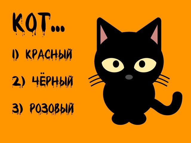 Привидение белое.Кот чёрный.Тыква оранжевая.Монстр зелёный.Do you want to improve your conversational Russian? Join the weekly Russian speaking clubs with creative native Russian teachers of Enjoy Russian language school!